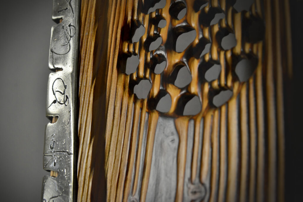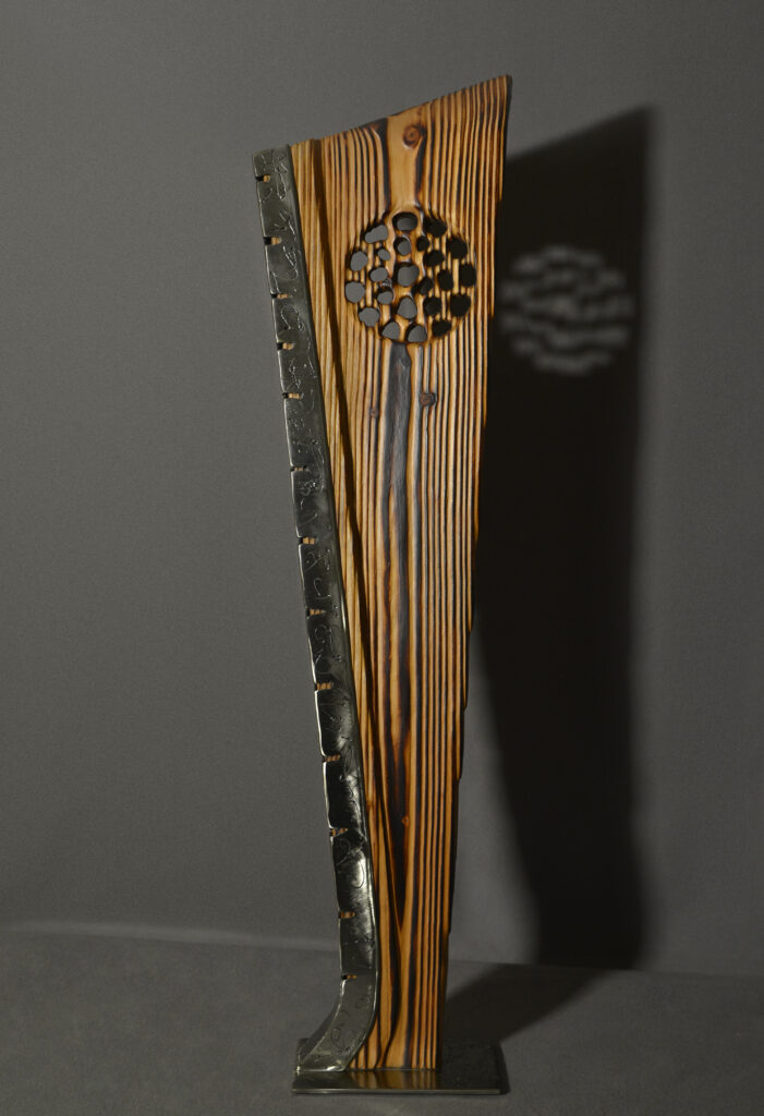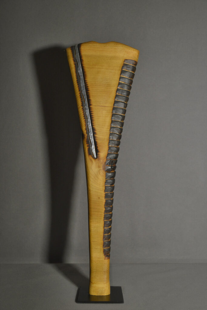Les Gardiens de la Terre Les Gardiens de la Terre sont des messagers bienveillants etprotecteurs, sans âge ni origine, porteurs de l’histoire de l’humanité.Ils témoignent de l’inquiétude d’un monde plongé dansl’incertitude absolue où paix et chaos se confondent.Ces témoins ne jugent pas, ne condamnent pas, maisrappellent aux vivants leurs devoirs et obligations. Dimensions : 45 x 7 x 5 cm | Matière : Frêne Inox Référence : 25FI111 Dimensions : 73 x 31 x 4 cm | Matière : Frêne Inox Référence : 25FI58 Dimensions : 58 x 43 x 5 cm | Matière : Chêne Acier Référence : 25CHA311 Dimensions : 50 x 21 x 5 cm | Matière : Chêne Acier Référence : 25CHA211 Dimensions : 38 x 6 x 3 cm | Matière : Cèdre Acier Référence : 24CM0804 Dimensions : 65 x 19 x 4 cm | Matière : Cèdre Aluminium Référence : 24CA68 Dimensions : 79 x 20 x 4 cm | Matière : Pin douglas Acier Référence : 23DM0308 Dimensions : 190 x 22 x 5 cm | Matière : Chêne Inox Référence : 24103 Dimensions : 27 x 13 x 6 cm | Matière : Châtaigner Métal Référence : 25HM0407 Dimensions : 65 x 23 x 5 cm | Matière : Pin douglas Inox Référence : 25DI0502 Dimensions : 57 x 10 x 3 cm | Matière : Buis Inox Référence : 25BI0505 Dimensions : 40 x 10 x 3 cm | Matière : Buis Inox Référence : 25BI0402 Dimensions : 60 x 8.5 x 6.5 cm | Matière : Buis Inox Référence : 25BI0104 Dimensions : 190 x 20 x 5 cm | Matière : Pin douglas Acier Inox Acier corten Référence : 24101 Dimensions : 41 x 9 x 5 cm | Matière : Pin douglas Inox Référence : 25DM0101 Dimensions : 94 x 23 x 4 cm | Matière : Pin douglas Acier Référence : 23DM0103 Dimensions : 98 x 25 x 5 cm | Matière : Pin douglas Acier Référence : 24DM0108 Dimensions : 55 x 7 x 3 cm | Matière : Buis Acier Référence : 24BM0310 Dimensions : 107 x 24 x 5 cm | Matière : Pin douglas Acier Référence : 24DM0110 Dimensions : 77 x 12 x 3 cm | Matière :Tsuga Acier Référence : 23TM0508 Dimensions : 77 x 19 x 4 cm | Matière :Chêne Acier Référence : 24CHM0202 Dimensions : 62 x 16 x 2,5 cm | Matière : Frêne Acier | Référence : 23FM0208 Dimensions : 79 x 20 x 3,5 cm | Matière : Pin douglas Acier | Référence : 23DM0308 Dimensions : 62 x 16 x 2,5 cm | Matière : Cèdre Acier | Référence : 23CM0108 Dimensions : 56 x 20 x 3 cm | Matière : Frêne Acier Référence : 23FM0106 Dimensions : 127 x 15 x 5,5 cm | Matière : Pin douglas Acier Référence : 23DM0205 Dimensions : 75 x 25 x 4,8 cm | Matière : Cèdre Acier Référence : 23CM0408 Dimensions : 174 x 28 x 3 cm | Matière : Frêne Acier Référence : 22FM0208 Dimensions : 88 x 15 x 2,5 cm | Matière : Tsuga Acier Référence : 22TM0412 Dimensions : 65 x 16 x 4,5 cm | Matière : Cèdre Métal Référence : 21CM0111 Dimensions : 100 x 14 x 3 cm | Matière : Frêne Métal Référence : 21FM0311 Dimensions : 112 x 28 x 4 cm | Matière : Chêne Métal pigmenté Référence : 22CHM0202 Dimensions : 46 x 23 x 3 cm | Matière : Frêne / Bronze Florentin Référence : 22FM0102 Dimensions : 100 x 19 x 5,5 cm | Matière : Douglas / Métal Référence : 20SBDM0110 Dimensions : 102 x 45 x 5,5 cm | Matière : Douglas / Métal Référence : 21SBDM0101 Dimensions : 188 x 50 x 6 cm | Matière : Pin douglas Acier corten Référence : E24DM0101 Dimensions : 188 x 29 x 3,5 cm | Matière : Acier corten-Pin douglas Référence : E23MM0102 Dimensions : 190 x 50 x 4 cm | Matière : Acier corten-Inox-Chêne Référence : E23CHM0407